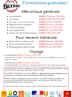 En tant qu’adhérent·e de l’association, vous êtes invité·e à l’assemblée générale qui se tiendra mardi 17 mars à 19H. RDV à la Casa Bicicleta. Un effort de présentation et de pédagogie sera fait pour rendre ce moment agréable et participatif. Venez sans hésiter ! L’assemblée générale annuelle sera l’occasion de :=> faire le bilan sur l’année écoulée : activités, budgets, …=> détailler les projets en cours=> discuter de projets nouveaux=> élire les membres du collège Voici les points qui seront soumis au vote […]
