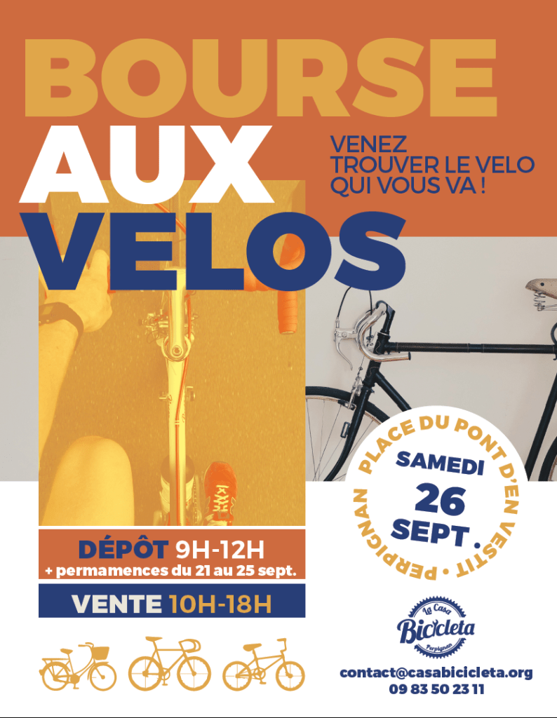 - Les vélos et accessoires (porte-vélo, siège enfant, remorque, sacoches,…) peuvent être déposés à la vente