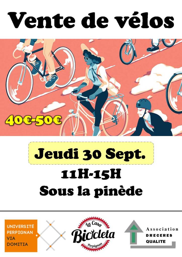 Deux associations seront présentes sous la pinède du campus de l’Université de Perpignan Via Domitia – UPVD pour vous proposer des vélos d’occasion remis en état à petit prix (environ 40-50€).
