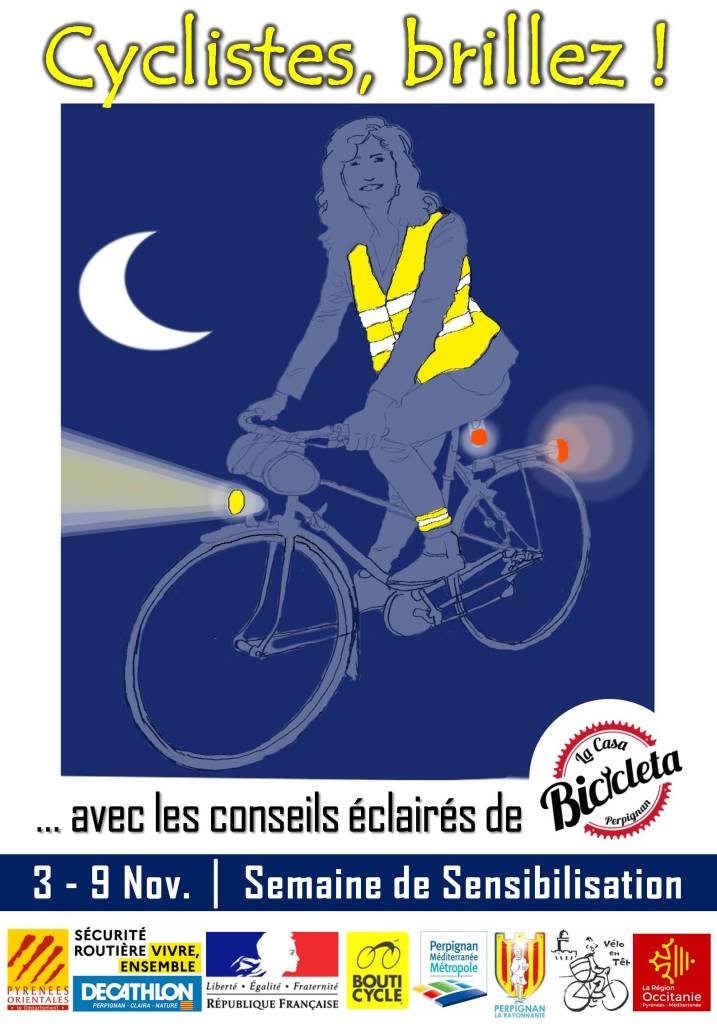 Cette semaine lumineuse sera l’occasion de nous faire voir de tous jeudi 13 Novembre, avec une balade à vélo festive et lumineuse dans le centre ville de Perpignan. On en profitera pour fêter nos 10 ans !