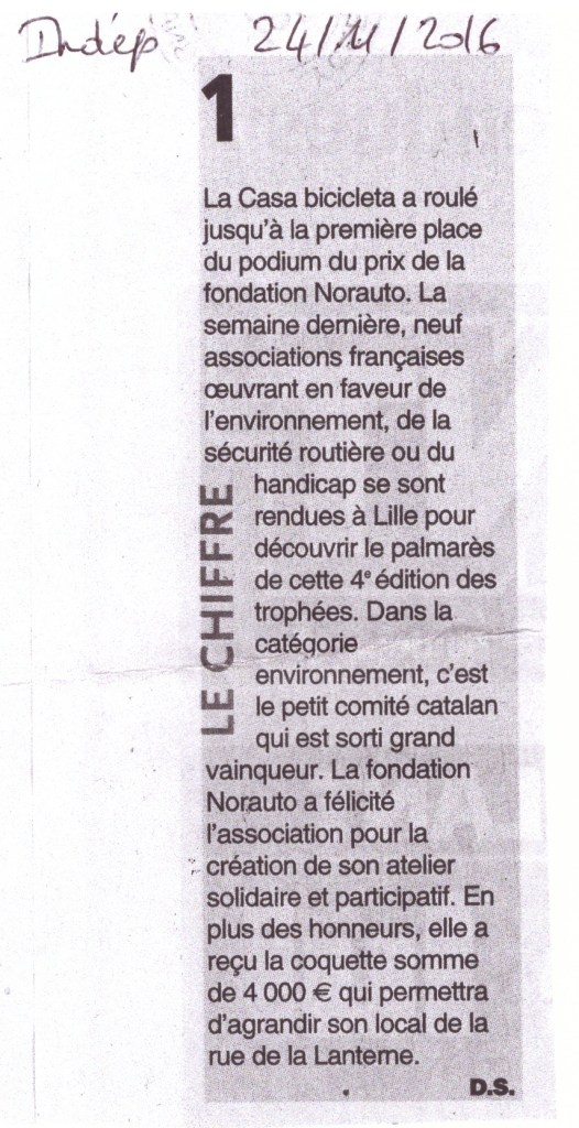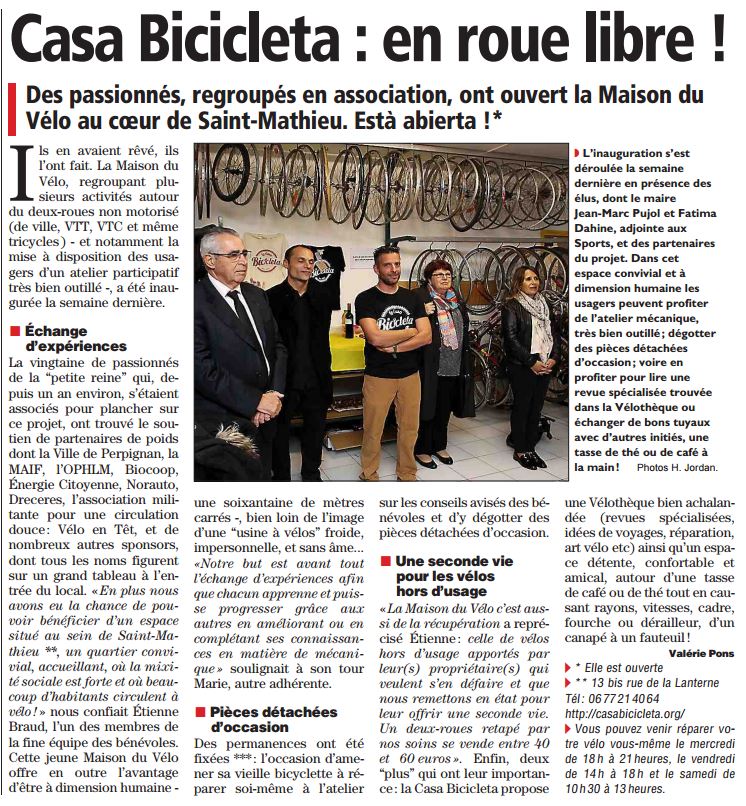 2015-11-12 : Article l’indép inauguration La Casa Bicicleta