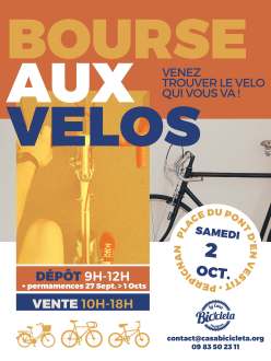 Le jeudi 7 Octobre à 19H30, La Casa Bicicleta vous propose une soirée sur le thème du voyage à vélo au cinéma le Castillet. Nous commencerons par la projection du film La France à Vélo (84mn). Ensuite, nous vous présenterons le matériel de prêt mis à disposition par notre association : sacoches, remorques, accessoires,… avec quelques vélos en démonstration équipés prêts à partir. Un échange aura lieu avec la salle pour discuter de cette belle manière de voyager ! Place […]